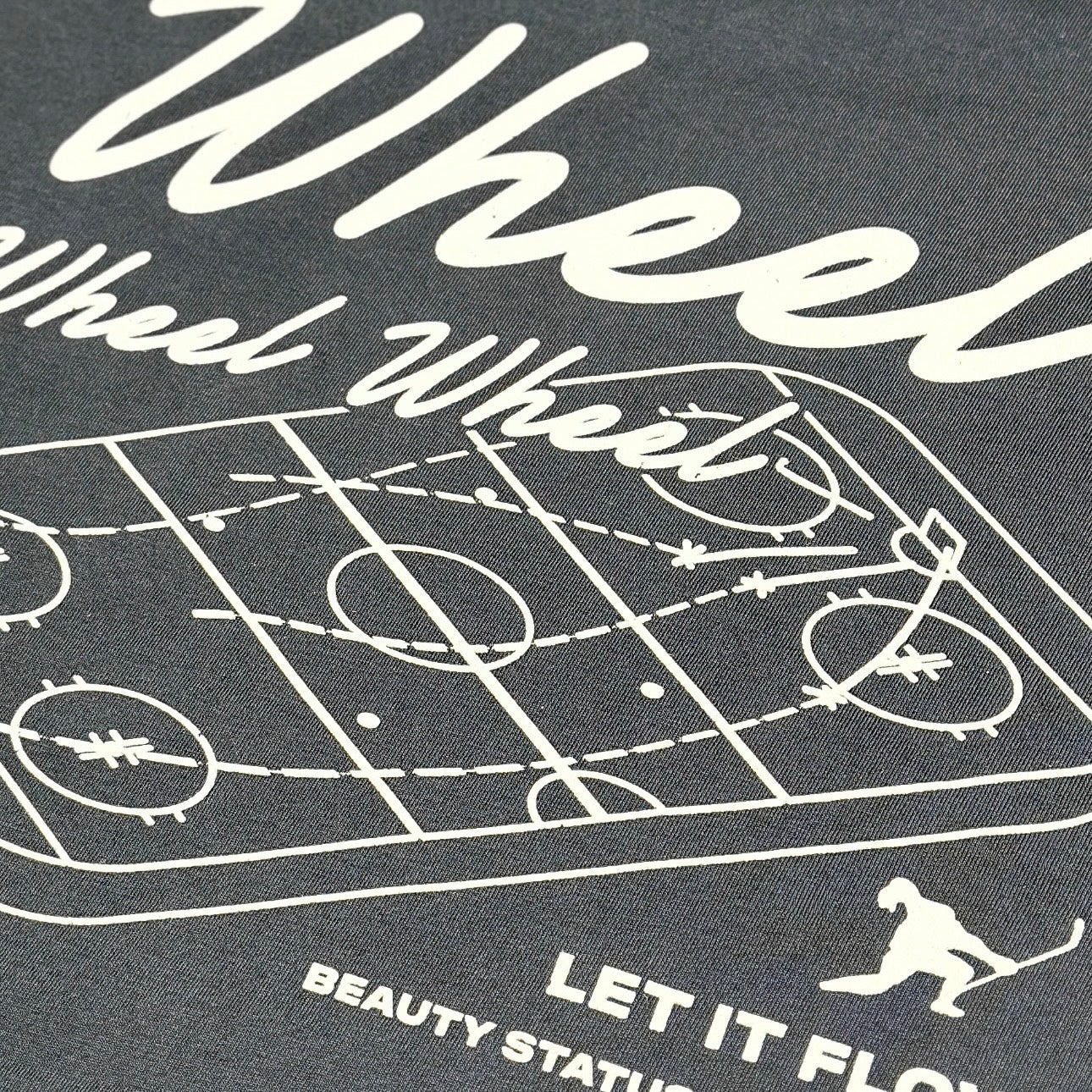 - Color: Iron Grey with Cream print, Front Chest + Back